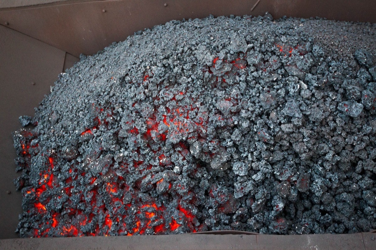 Під впливом високої температури вогонь переходить на верхній шар шихти. Зона горіння поступово просувається зверху донизу. Весь процес займає 10-20 хвилин. Пропеченому «коржу» треба охолонути у спеціальному місці. Воно так і називається – зона охолодження.