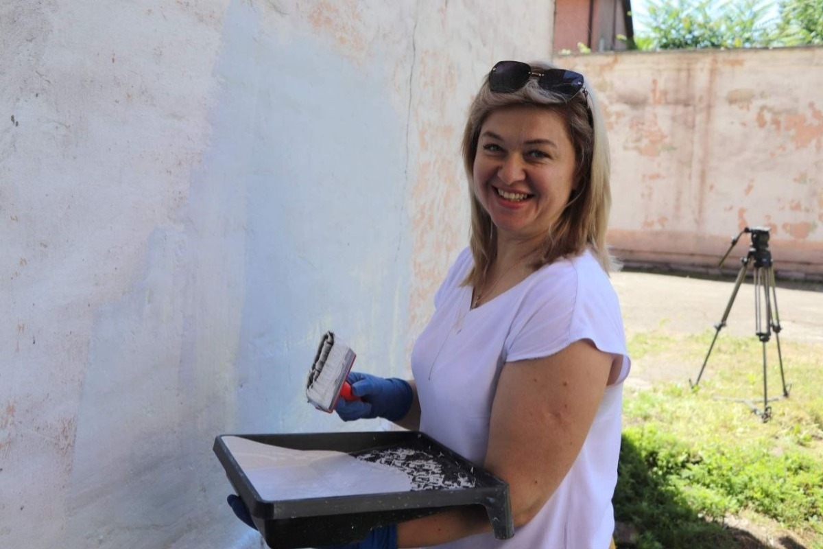 Днями в Кам’янському біля гуртожитку, що на Гімназичному проспекті, 61, кипіла колективна робота. Цього разу фарбували фасад будівлі. У заході взяли участь вимушені переселенці з Маріуполя й Авдіївки.