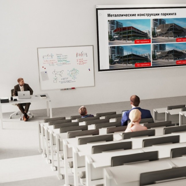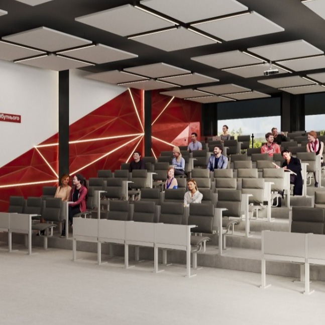 Середні поверхи відведені під лекційні аудиторії, кабінети й лабораторії. Головний акцент у їхньому облаштуванні – функціональність, від комплектації обладнанням, розміщення меблів до колірних рішень. Важлива кожна деталь.
