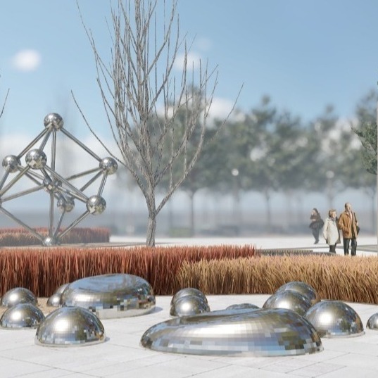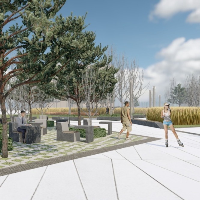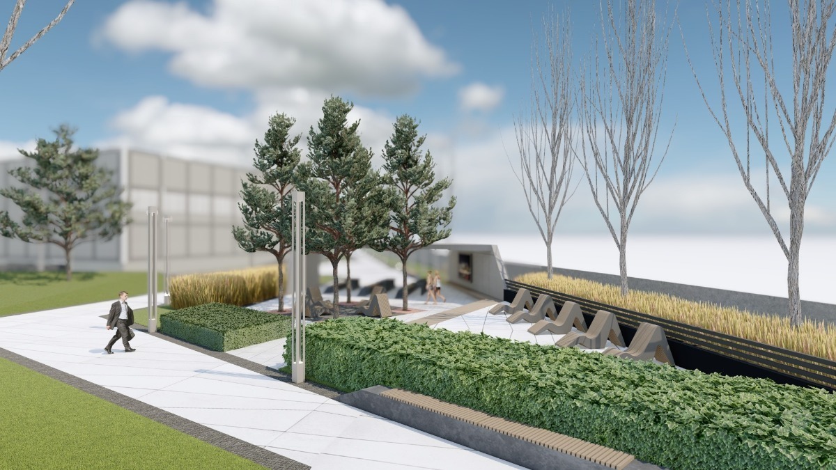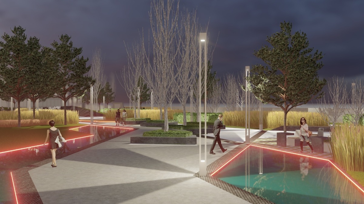 На території не буде звичних ізольованих зон для відпочинку, спорту чи паркінгу. Натомість концепція передбачає загальний простір, об'єднаний ландшафтним дизайном, малими архітектурними формами й системою освітлення.