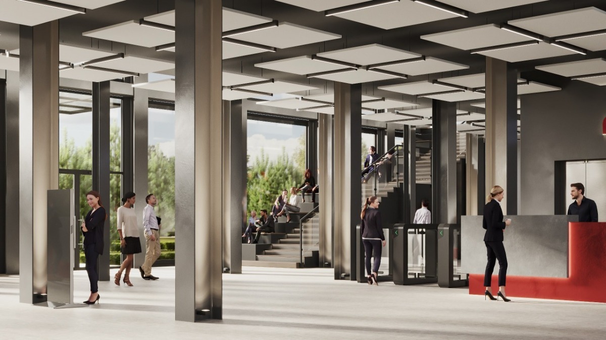 Усередині нас очікують світлі відкриті простори – в конструкції переважають панорамні вікна, високі стелі й мінімум стін. На першому поверсі корпусу буде вестибюль, хол, просторий конференц-зал і буфет. Окремої уваги заслуговують громадські сходи. Вони спроєктовані як подвійне полотно: з одного боку облаштовано повноцінне місце для відпочинку та навчання, а з іншого – ергономічні східці.