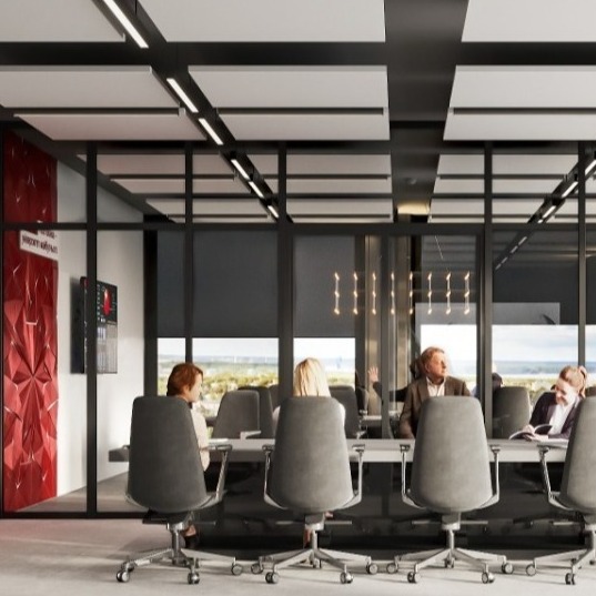 Конференц-зал має цікаву «фішку». Одна з його стін – гігантська вигнута металева пластина, що відбиває світло з вікон. Завдяки цьому прийому вигляд приміщення змінюється в залежності від часу доби та погоди.