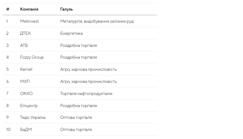 За даними Forbes, найбільшим холдингом України залишається Метінвест із виторгом 270,5 млрд грн у 2023 році. А до першої п’ятірки рейтингу також увійшли ДТЕК, АТБ, Fozzy Group і Kernel.