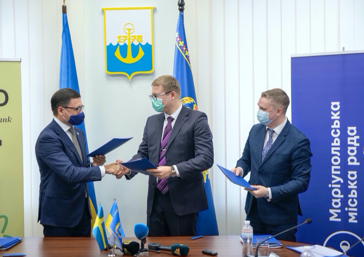 Договір підписали Посол Швеції в Україні Тобіас Тіберг, міський голова Маріуполя Вадим Бойченко та виконувач обов'язків генерального директора, директор з технології та якості МК «Азовсталь» Групи Метінвест Дмитро Зотов.