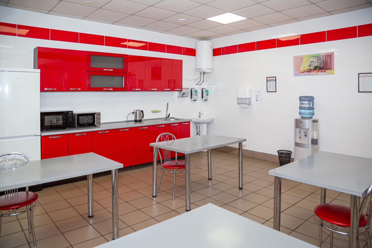 В ходе работ заменили трубы водоснабжения и канализации, проложили новую проводку и вентиляцию. Стены и пол облицевали кафельной плиткой. Установили новые металлопластиковые окна и двери. Кроме того, позаботились об удобстве сотрудников, закупив современную технику – холодильник, микроволновую печью, бойлер, кондиционер и кухонный инвентарь.