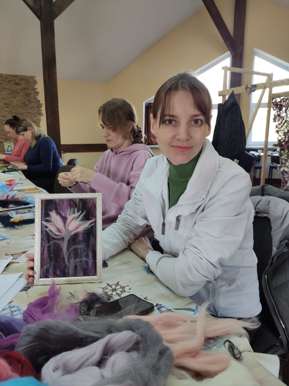 З мамами та дітьми займалися за окремим розкладом: проводили групові й індивідуальні консультації та заняття, зокрема тілесну терапію й артмайстерні. Дві маскувальні сітки, які зробили учасниці програми, вже передані захисникам України в Бахмут. А кошти від продажу картин з вовни теж надійдуть на підтримку ЗСУ. Також учасниці програми розписали вазу з мінометної гільзи, що стала лотом на благодійному аукціоні «Рятуємо життя», який відбувся 8 березня в Мілані.