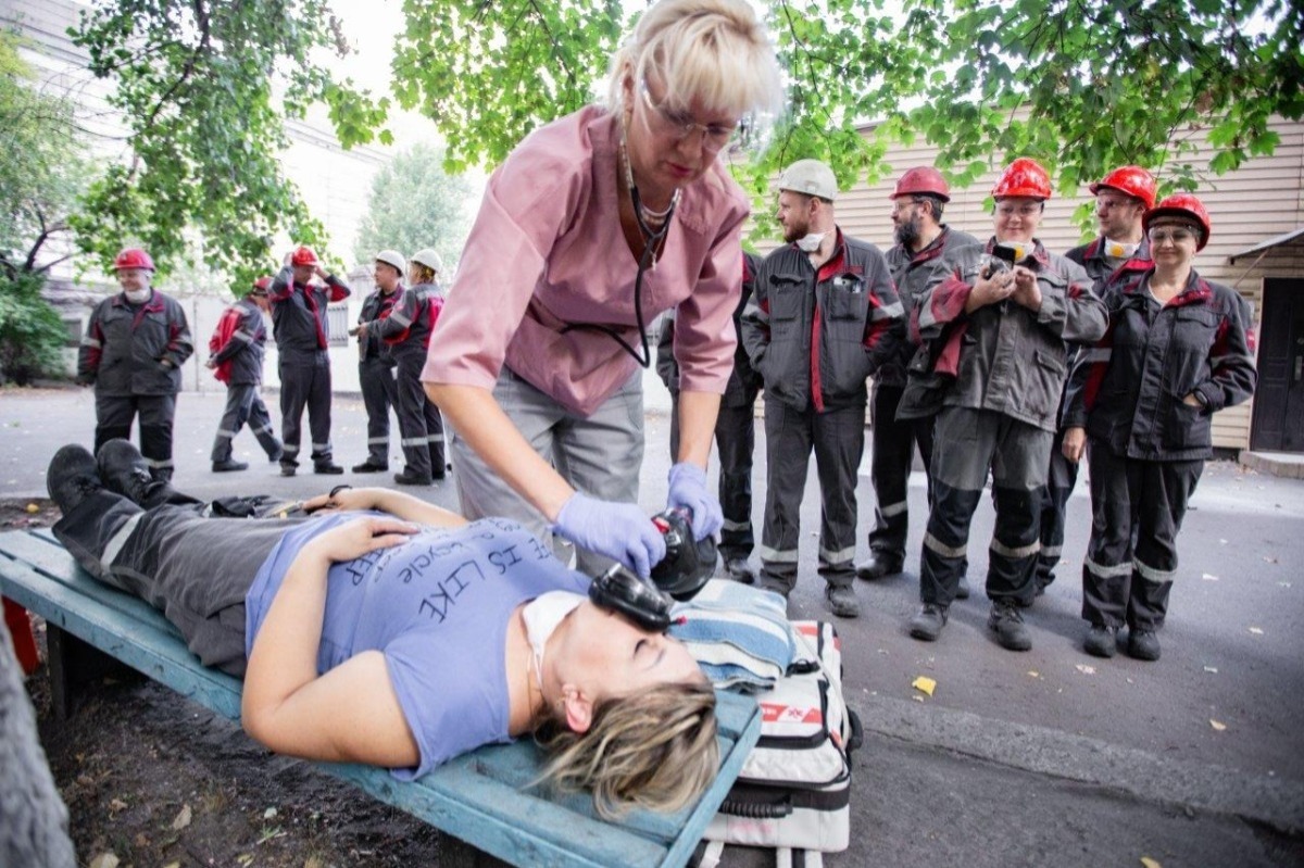 Cпівробітники дирекції з охорони праці, відомчої пожежної частини комбінату, першої рудозбагачувальної фабрики та медичної частини разом відпрацювали свої дії у надзвичайній ситуації – ліквідації пожежі на території виробничого цеху та наданні долікарської допомоги постраждалим із різними видами травм.