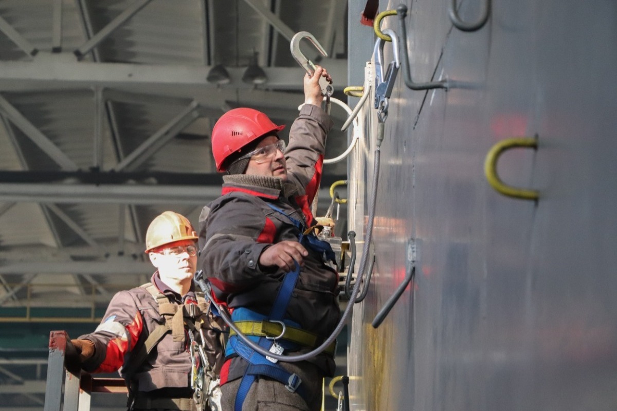 Майже в кожному цеху комбінату є устаткування, розташоване на висоті понад 1,3 метра. Для його обслуговування й ремонту фахівцям необхідно володіти певними знаннями та навичками. Тут важливі найменші нюанси – від індивідуальної «підгонки» спорядження до визначення безпечних точок кріплення на вертикальних чи горизонтальних поверхнях. А на відкритому повітрі необхідно враховувати погодні умови й навіть швидкість і напрямок вітру. Свої тонкощі – при роботі в колодязях або будь-яких бункерах, ємностях, у які потрібно спуститися, закріпитися та провести необхідні ремонти. Усіх цим премудрощів співробітників комбінату вчать досвідчені інструктори.