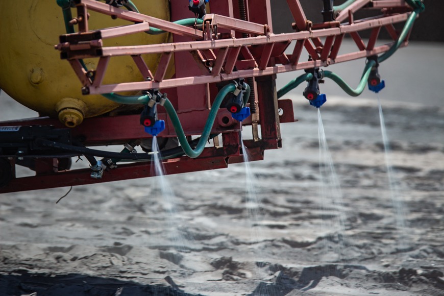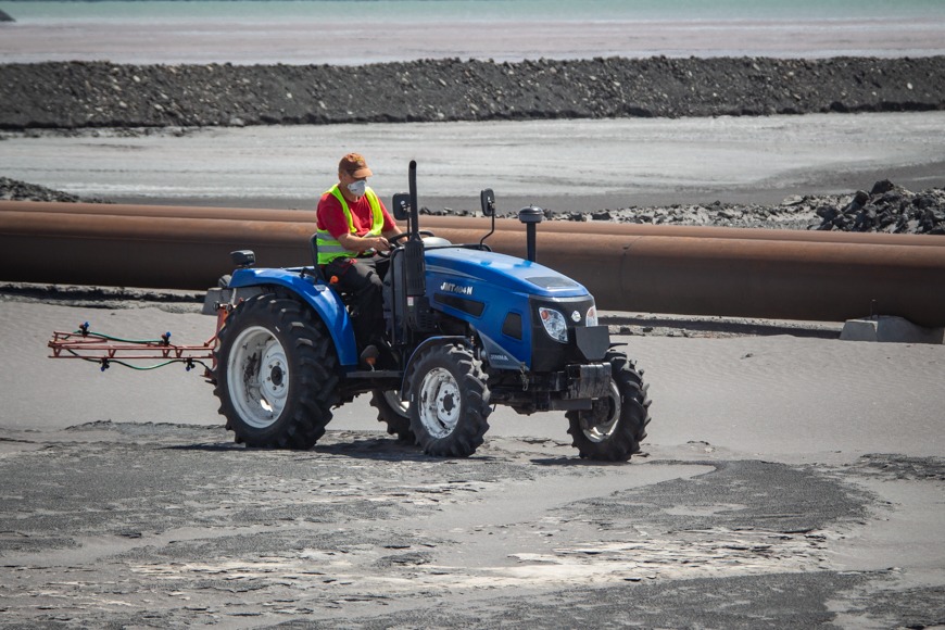 Спеціалісти комбінату спільно з представниками науко-виробничого підприємства «Єврокурс» для обробки поверхні обрали двокомпонентний полімерний реагент. Перший сольовий компонент утримує вологу, а другий – утворює щільну плівку. Протягом тижня екологи будуть спостерігати за тим, як діє реагент, щоб зробити висновки щодо його ефективності.