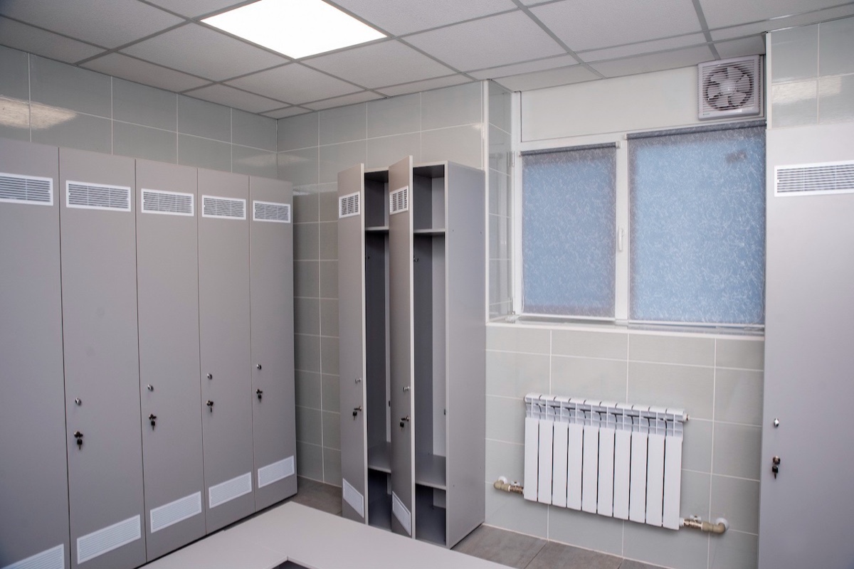 Також проведено роботи з ремонту учнівської роздягальні площею 25 кв. м. У ній теж замінили всі комунікації, встановили нові вікна та двері. Стіни й підлогу в роздягальні виклали кахельною плиткою, змонтували підвісну стелю типу «Амстронг» і встановили нові освітлювальні прилади. Приміщення укомплектували 30 шафками для речей та лавами.