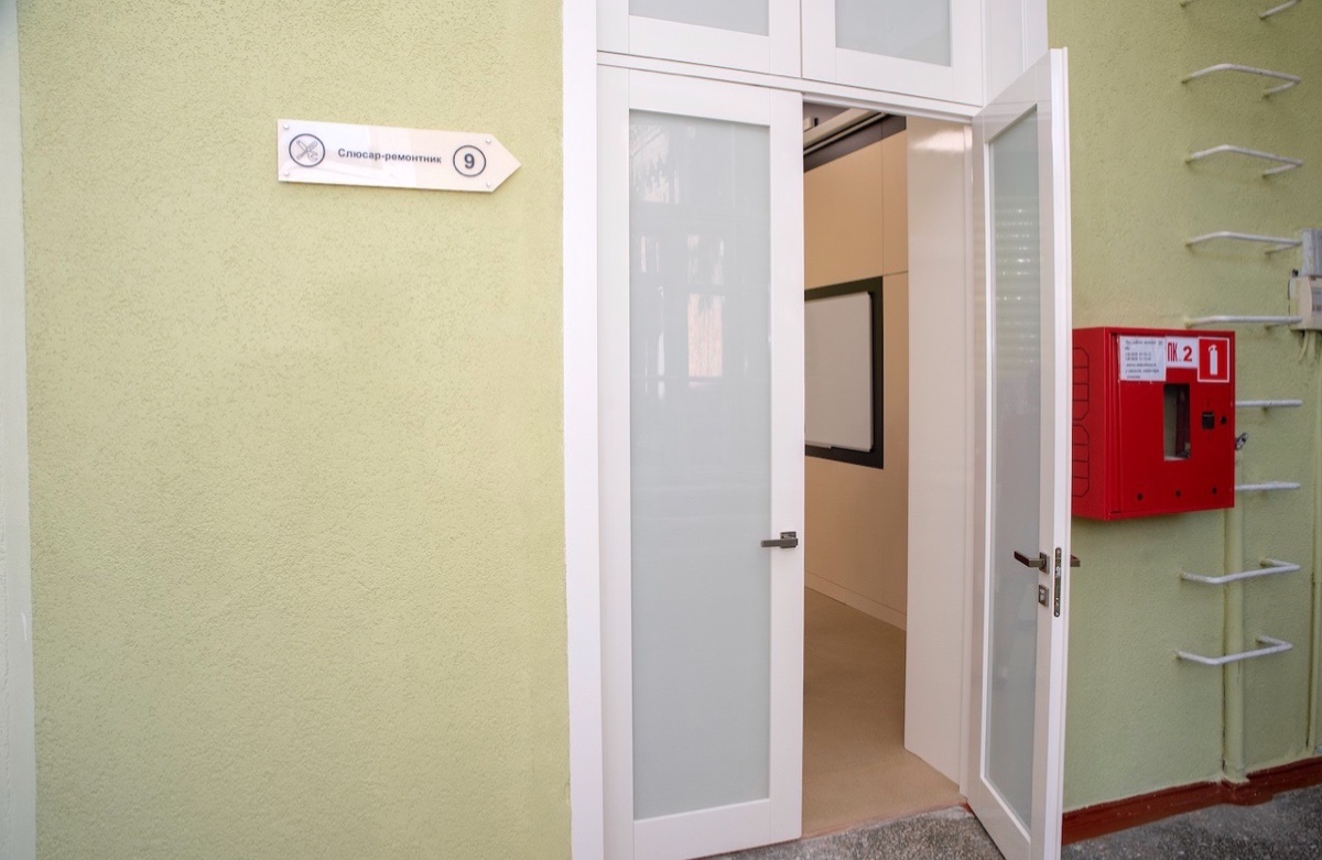 До початку нового навчального року за фінансової підтримки Азовсталі в Маріупольському центрі професійно-технічної освіти відкрили оновлений кабінет слюсарної справи площею 68 кв. м. Тут замінили електропроводку й систему опалення, постелили нове покриття для підлоги, стіни вирівняли та пофарбували, встановили новий дверний блок, підвісну стелю і сучасні енергозберігаючі світильники. Відновили повністю меблі – парти, стільці, вбудовані шафи та дошку. Закупили нову техніку – ноутбук, принтер, проєктор і кондиціонер.