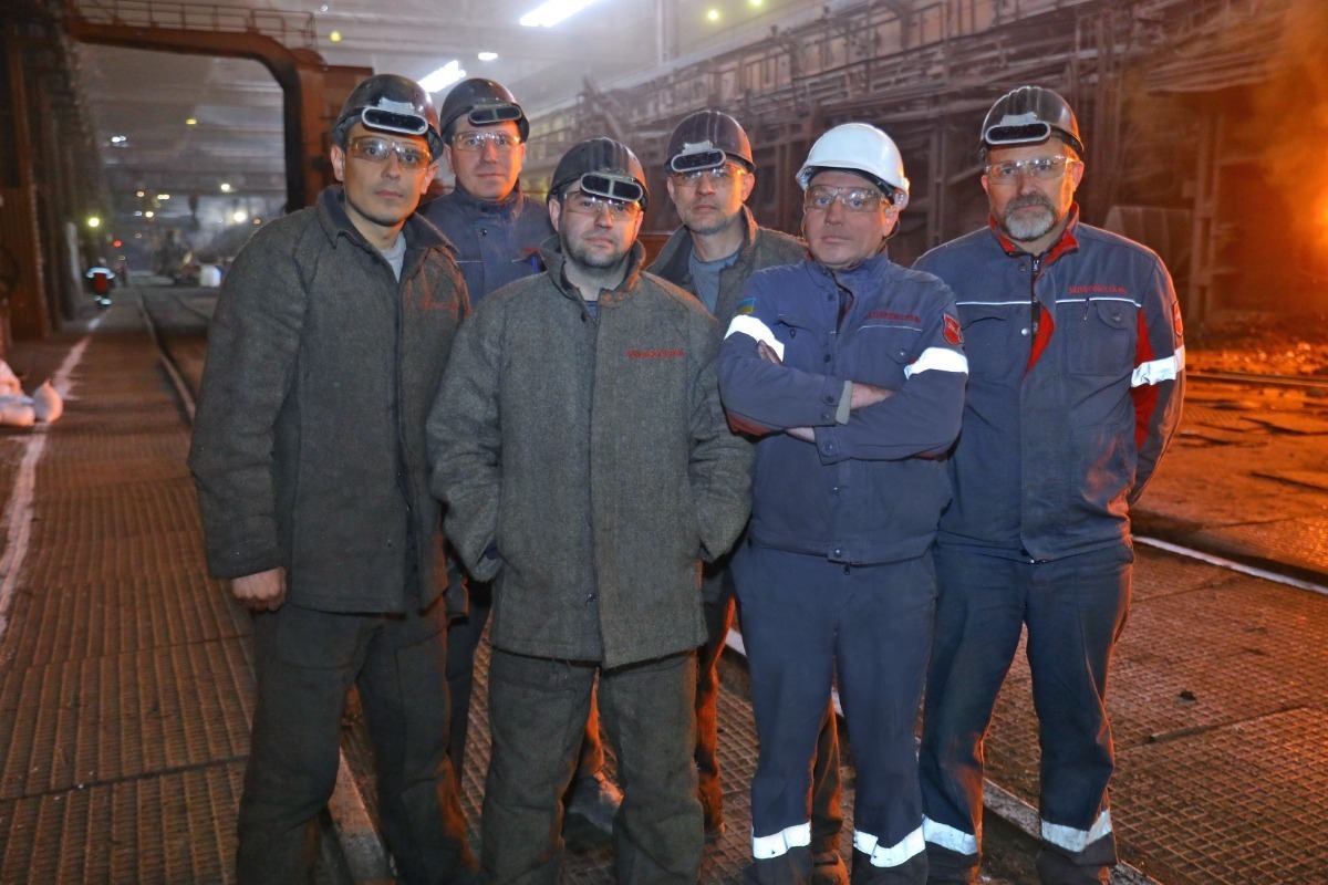 Сталевари Андрій Кримцев та Олександр Єльцов вже несуть трудову вахту на печі, що працює. За наявності чавуну контролюють і керують процесом виплавлення сталі біля самих витоків. Допомагають їм у цьому підручні сталеварів – Олександр Харитоненков та Віталій Вальчук.