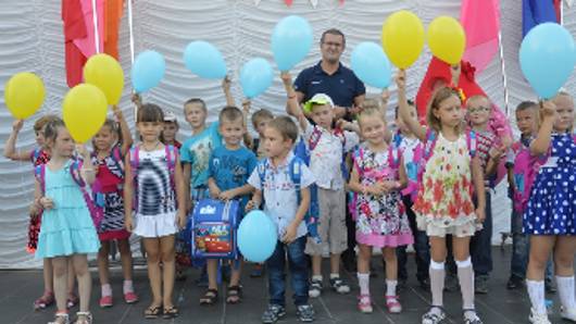 Метінвест подарував авдіївським першокласникам шкільні портфелі