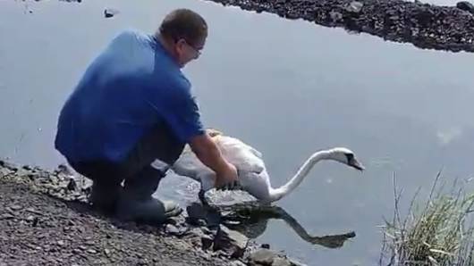 Людяність передусім: гірники Північного ГЗК врятували лебедя