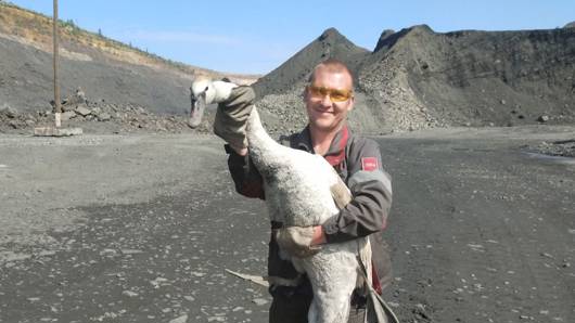 Добрий знак: за день до мобілізації північанин Сергій Котлубай врятував в кар’єрі лебедя