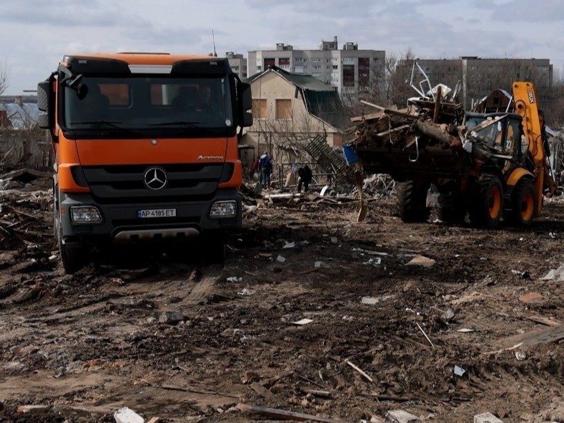 За один круг, задіяні у роботах вантажівки, вивозять на звалища зо 50 тонн будівельного сміття. Працюють майже без перерви.