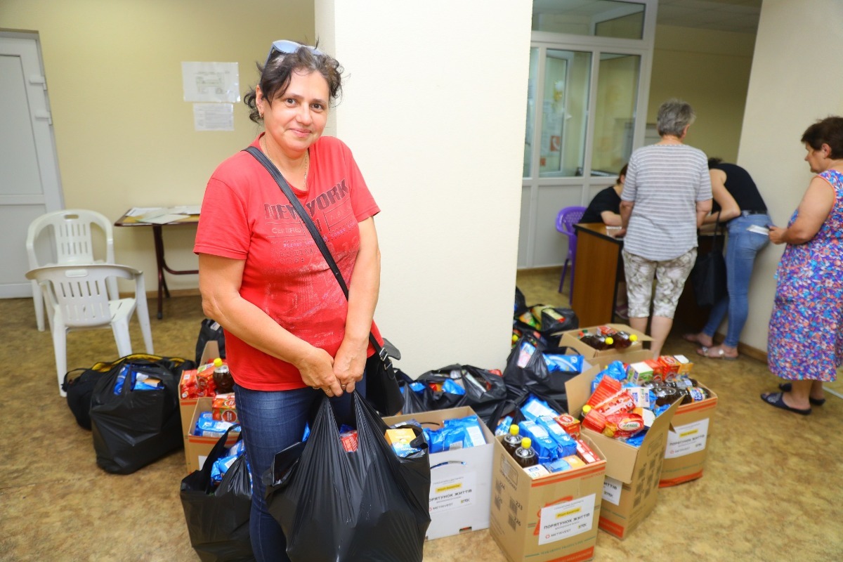 – Разом із донькою Веронікою ми виїхали з окупованого села Старопетрівка Бердянського району. Спочатку ми поїхали на Закарпаття, але моїй доньці там не підійшов клімат. Вона інвалід дитинства. Ми порадились із лікарями, і нам рекомендували повернутися до Запоріжжя. Ми тут уже місяць. Два тижні нам не вдавалося знайти житло, і я звернулася на гарячу лінію Метінвесту. Нам запропонували тимчасовий прихисток в одному з шелтерів. Допомога з продуктами, яку нам надають, дуже важлива. Це не тільки матеріальна підтримка, а й моральна. Дуже приємно, що про нас піклуються і не забувають, – зазначила переселенка Надія ЛИТВИНЕНКО.