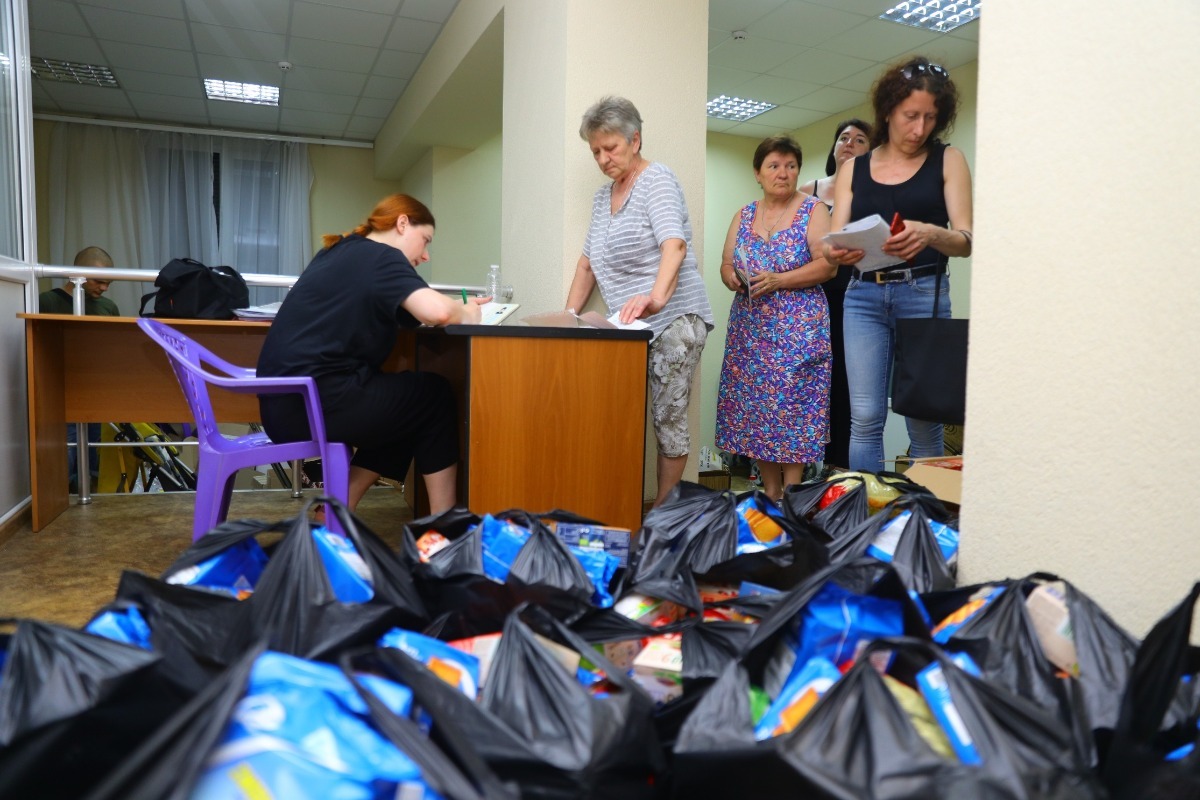 Видача продуктових наборів у межах проєкту «Рятуємо життя» проводиться регулярно. Допомогу системно видають згідно з потребами мешканців шелтерів. Нагадаємо, що за 100 днів війни Метінвест прийняв на соціальних об’єктах Запоріжжя приблизно 6 тисяч переселенців. Ці люди отримали житло, психологічну, медичну та гуманітарну допомогу, підтримку в працевлаштуванні.