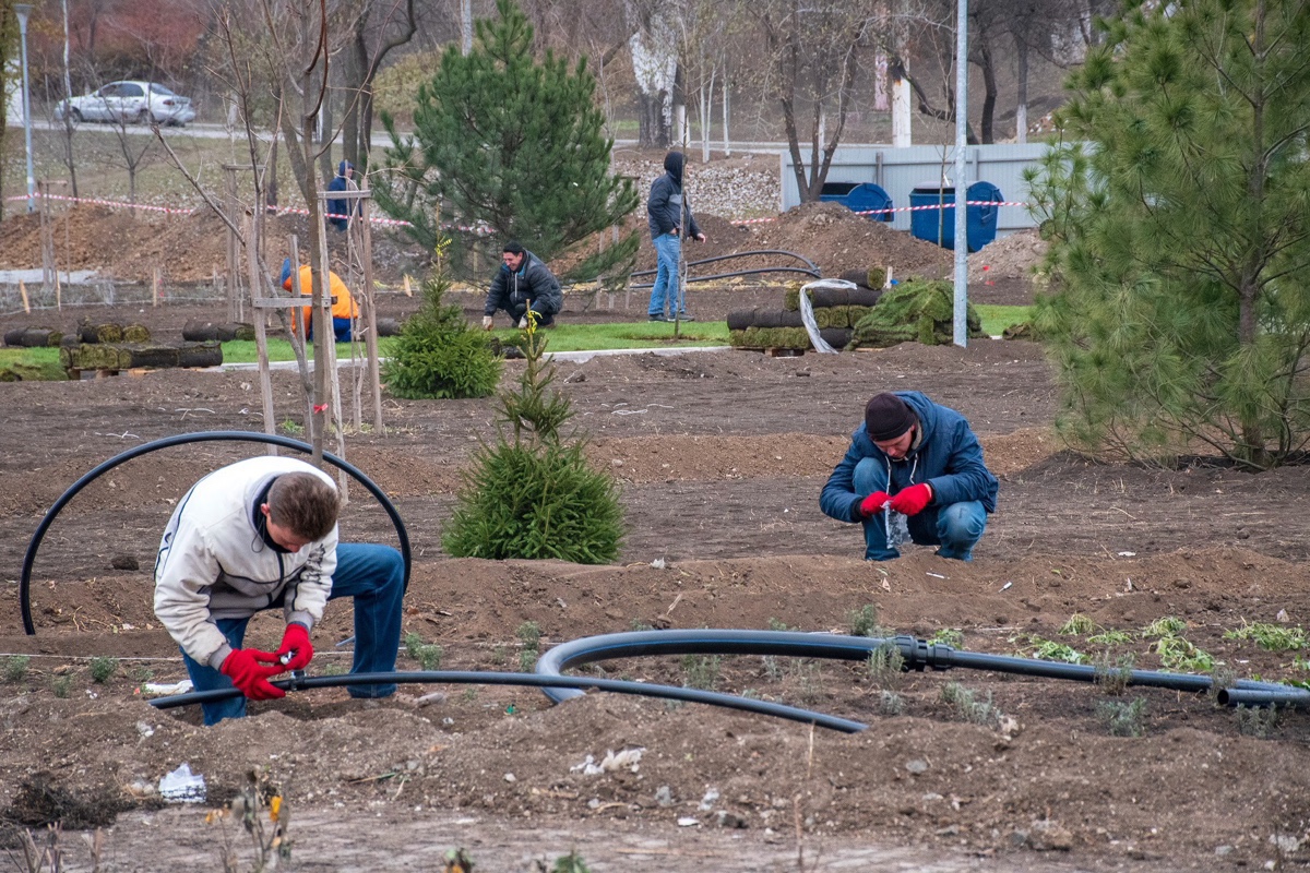 У самому парку імені Гурова ведуться роботи з планування доріжок, заміни підземних комунікацій – водопроводу й каналізації, розпочинають облаштування зовнішніх мереж електропостачання. Роботи в зоні барбекю, профінансовані Групою Метінвест, наближаються до завершення.