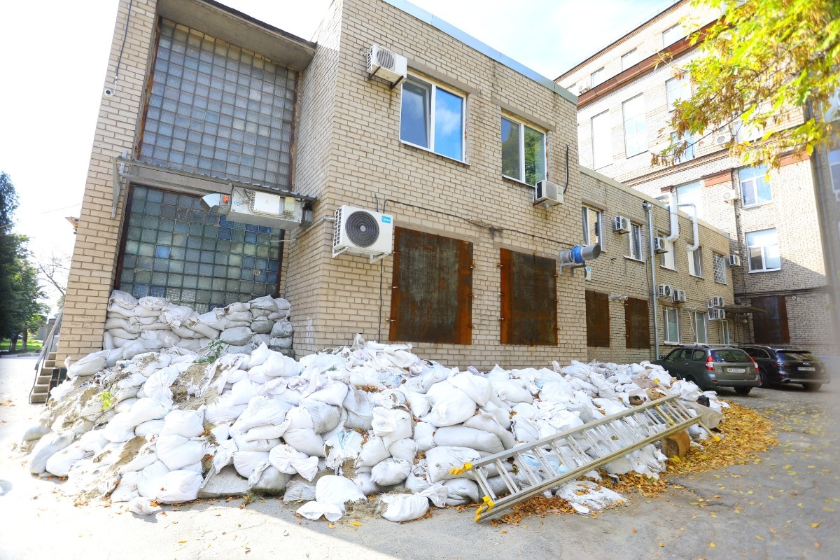 Надійним захистом від ворожих обстрілів стратегічно важливих будівель залишається укріплення зовнішніх стін мішками з піском, вікон – сталевими чи щитами ДСП. Ще на початку повномасштабної війни таким чином укріплювали будівлі комунальних підприємств і закладів охорони здоров’я. Тоді на допомогу місту вийшли запорізькі металурги, які надали для цих потреб металеві листи й мішки з піском. Наприклад, для потреб п’ятої міської лікарні, в березні комбінат передав 200 мішків з піском та 80 металевих листів. В укріпленні лікарні допомагали волонтери комбінату спільно з працівниками лікарні та комунальниками.